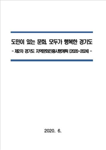 제2차 경기도 지역문화진흥 시행계획은 지난 5년(2015-2019) 간의 성과와 한계에 기반하여 경기도 지역문화 여건변화 등 새로운 정책 환경에 부합하는 향후 5년간의 계획을 수립함으로써 도민의 문화권 보장, 지역 간의 문화격차 해소, 지역별 특색 있는 고유 문화의 발전, 지역 주민 삶의 질 향상의 목표 달성을 위해 '도민이 있는 문화, 모두가 행복한 경기도'를 비전으로 설정하고 자치, 공정, 향유의 3대 가치를 기반으로 3대 목표와 6대 전략, 15대 핵심과제를 제시하였다. |