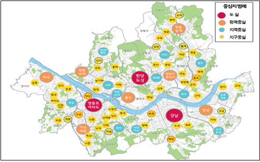 - 「2030 서울플랜」서 제시한 중심지 체계 완성, 상업지역 192만㎡ 확대 지정